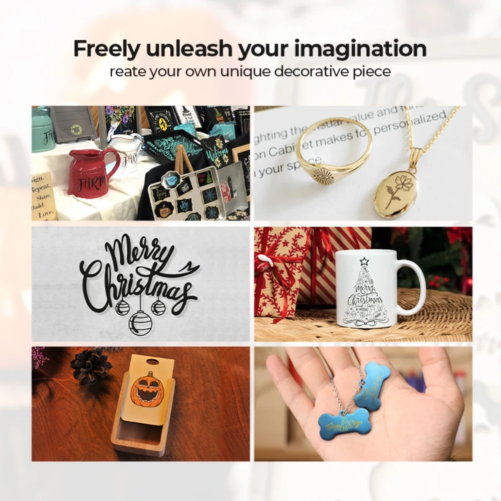 Support engraving: Wood, Bamboo, Paper, Plastic, Leather, PCB board, Aluminum oxide, Non-reflective coating and Lacquered metal, ceramic, etc.