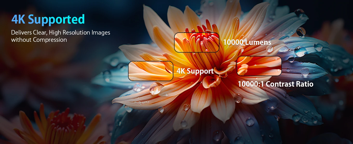 ✔️Native 720P and 1080P/4K Supported: Enjoy vibrant and sharp visuals with native 720P resolution and 1080P/4K support. The X1BQ brings you deeper blacks, brighter whites, and enhanced detail, making it perfect for movies and gaming on a screen up to 200 inches. (Note: Ensure 1080P/4K devices, such as a TV stick, are connected via HDMI for video playback. Videos labeled as 1080P/4K will display at a native resolution of 720P, often termed '1080P/4K supported').