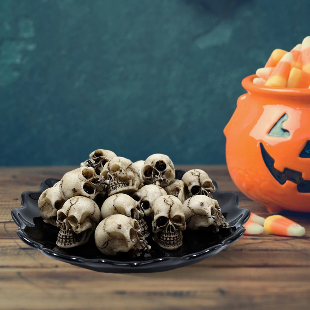 20Pcs Gothic Skull Sculptures Collectable Halloween Light Skull Figurine Decorative Creative Landscape Garden Potted Plant Decor
