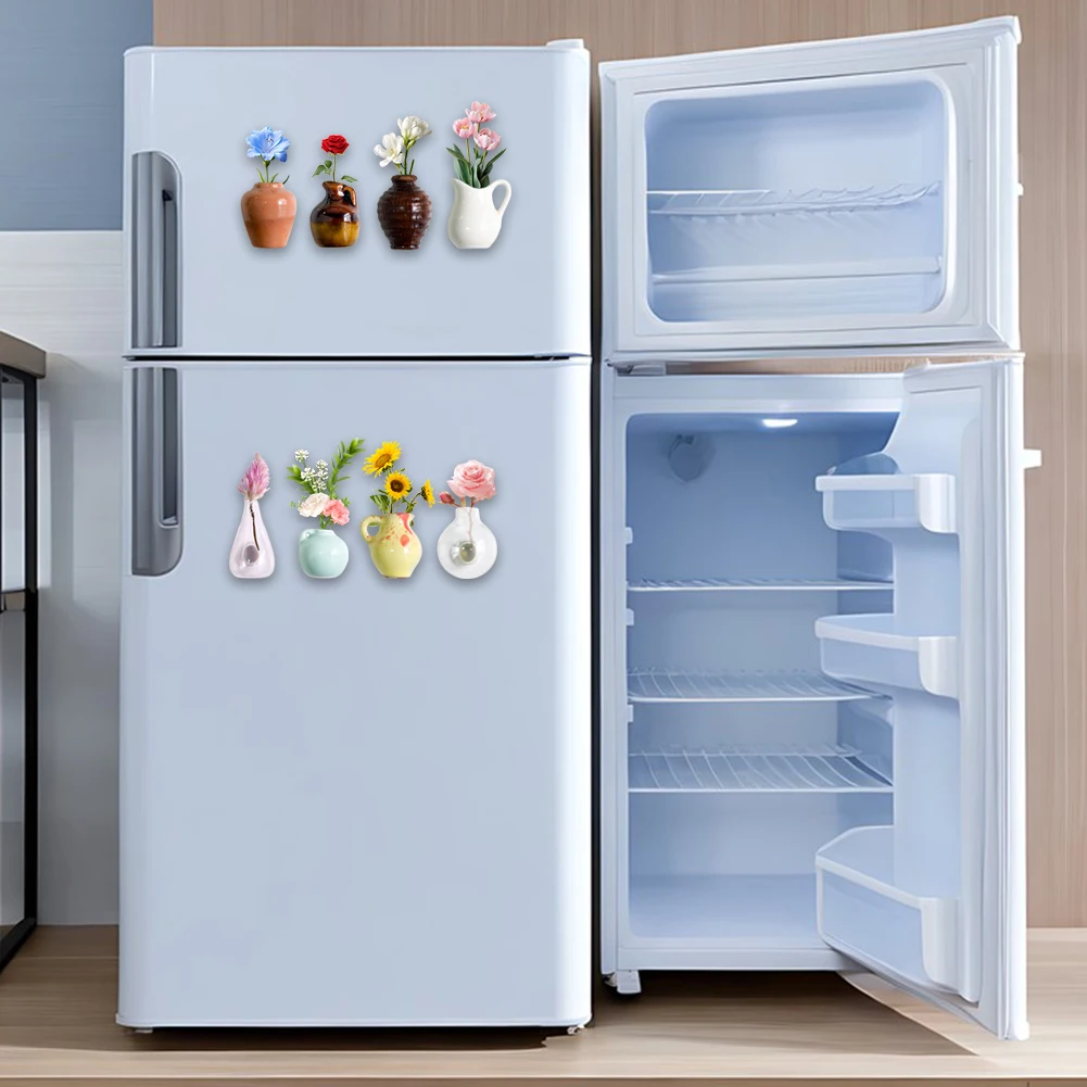 6/8PCS Mini Vase Magnets New Cute DIY 3D Vase Creative Ceramic Refrigerator Magnet For Fridge Office Kitchen Locker Decoration