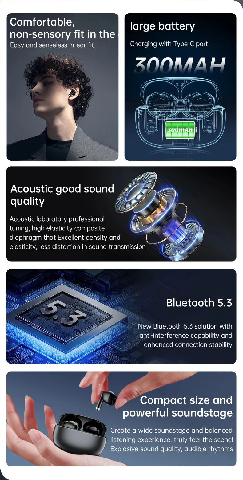 ENC environmental noise reduction. Create a quiet world in a noisy environment, listen to beautiful singing, and have clear phone communication.