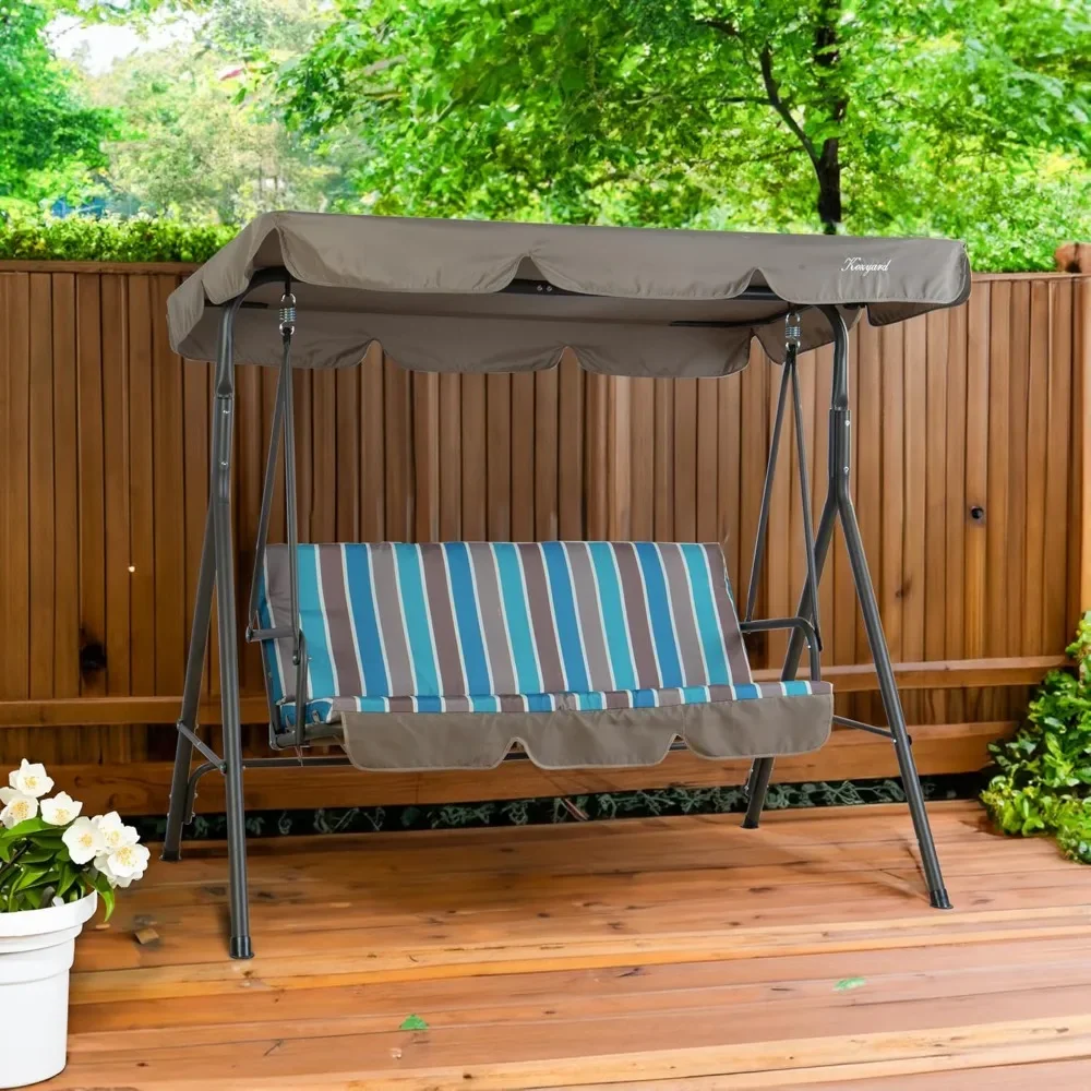 Alicia Patio Swing Chair - Comfortable 3 Cushion Seats with Strong Steel Frame, Adjustable Canopy and Removable Cushion