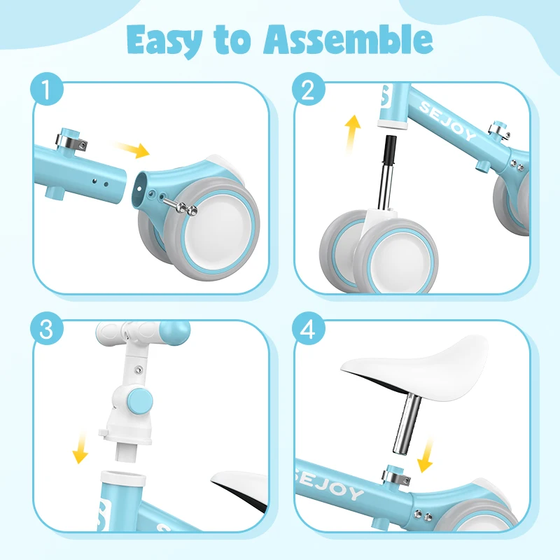 Sejoy baby balance bike Suit for 10-36 month babies who are learning to walk or ride. It helps to develop babies' balance, steering, and coordination, and gain confidence at an early age. This balance bike is your top gift for ride-on toys for 1-year-old boys and girls.