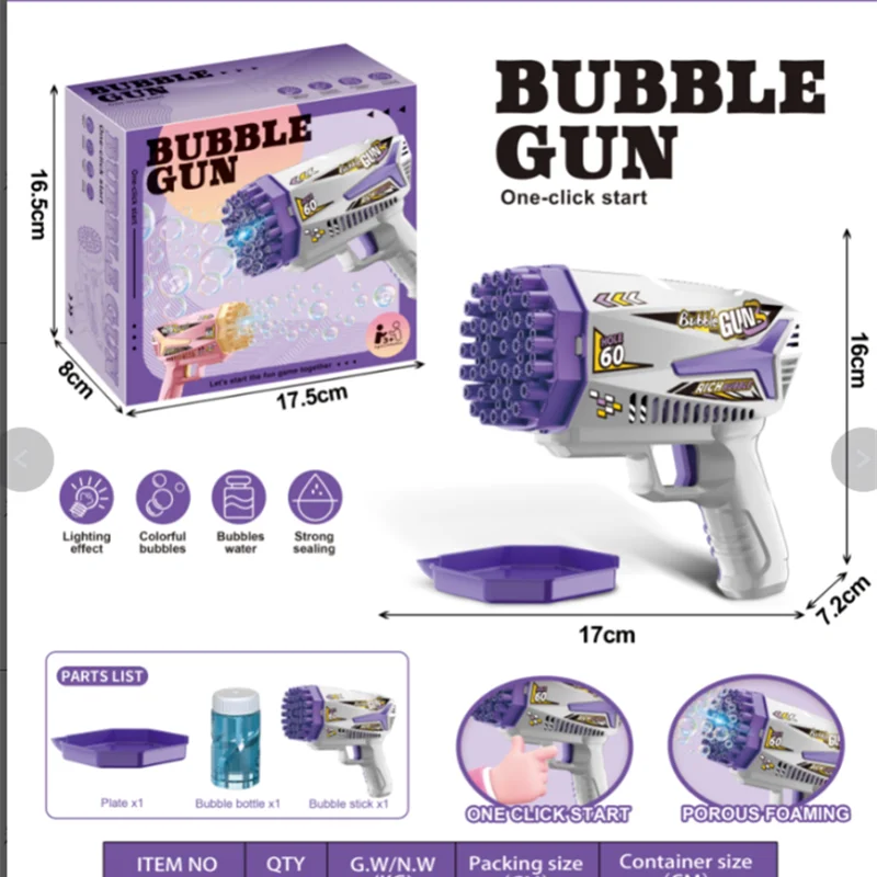 Bubble toys are a must-have for summer outdoor activities. With 60 large bubble holes, they can instantly create a dreamy bubble