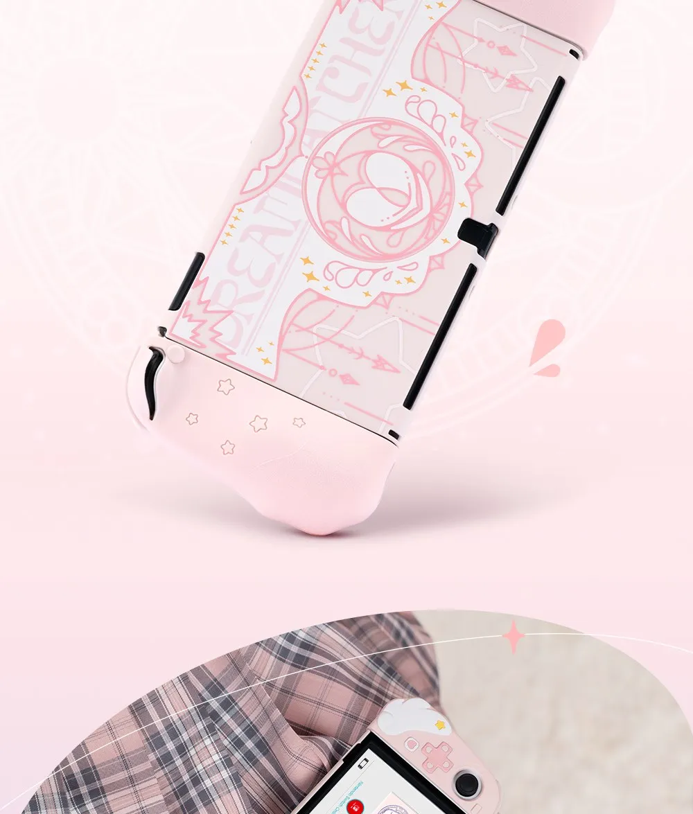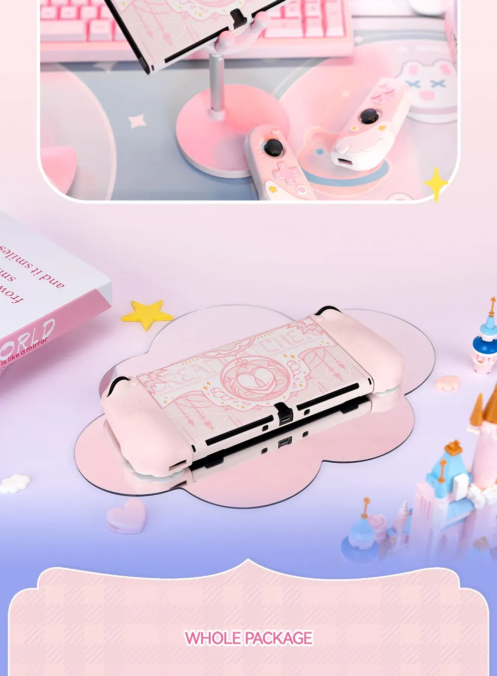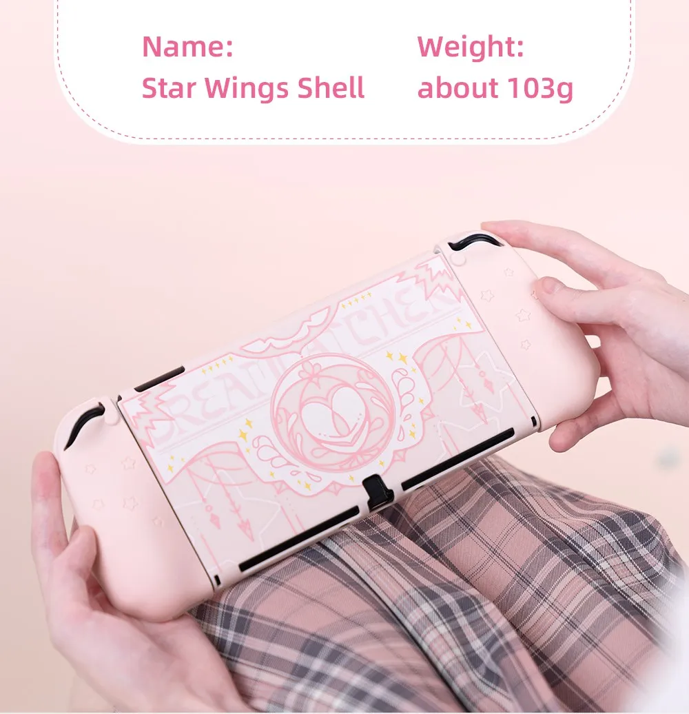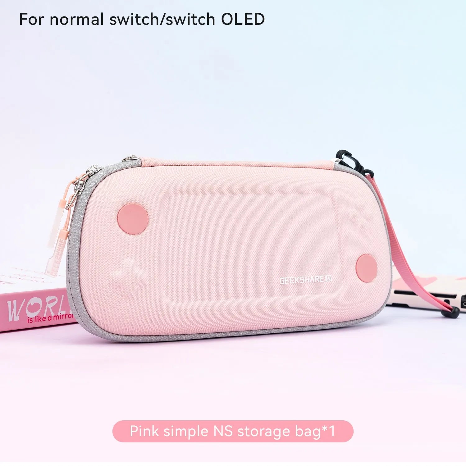 Geekshare Star Wing Series Pink Protective Case Storage Bag Carrying Case Big Mouse Pad for Nintendo Switch OLED Joy Con Gift