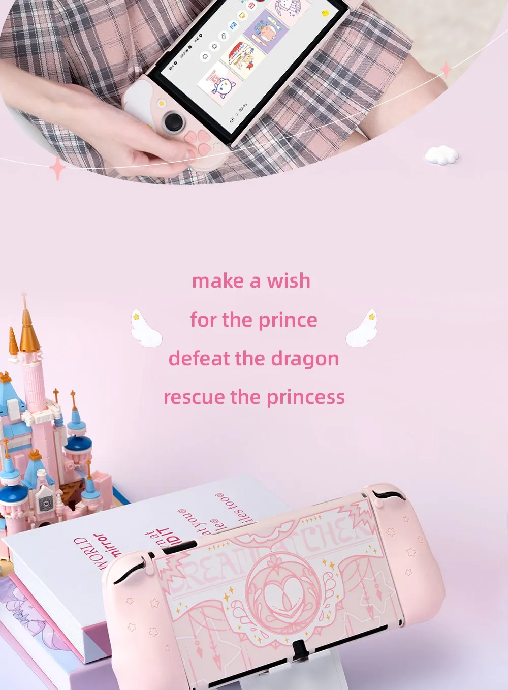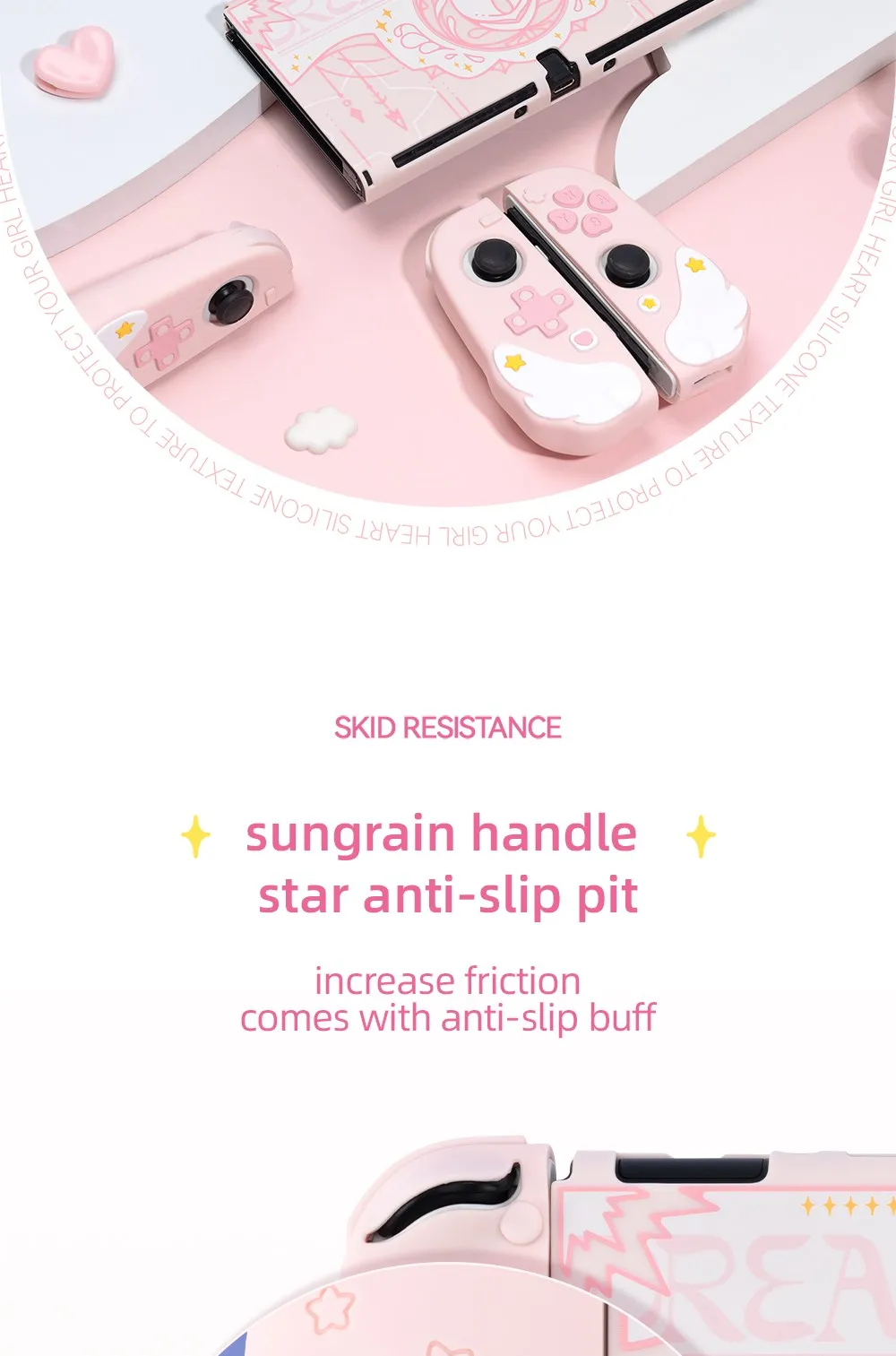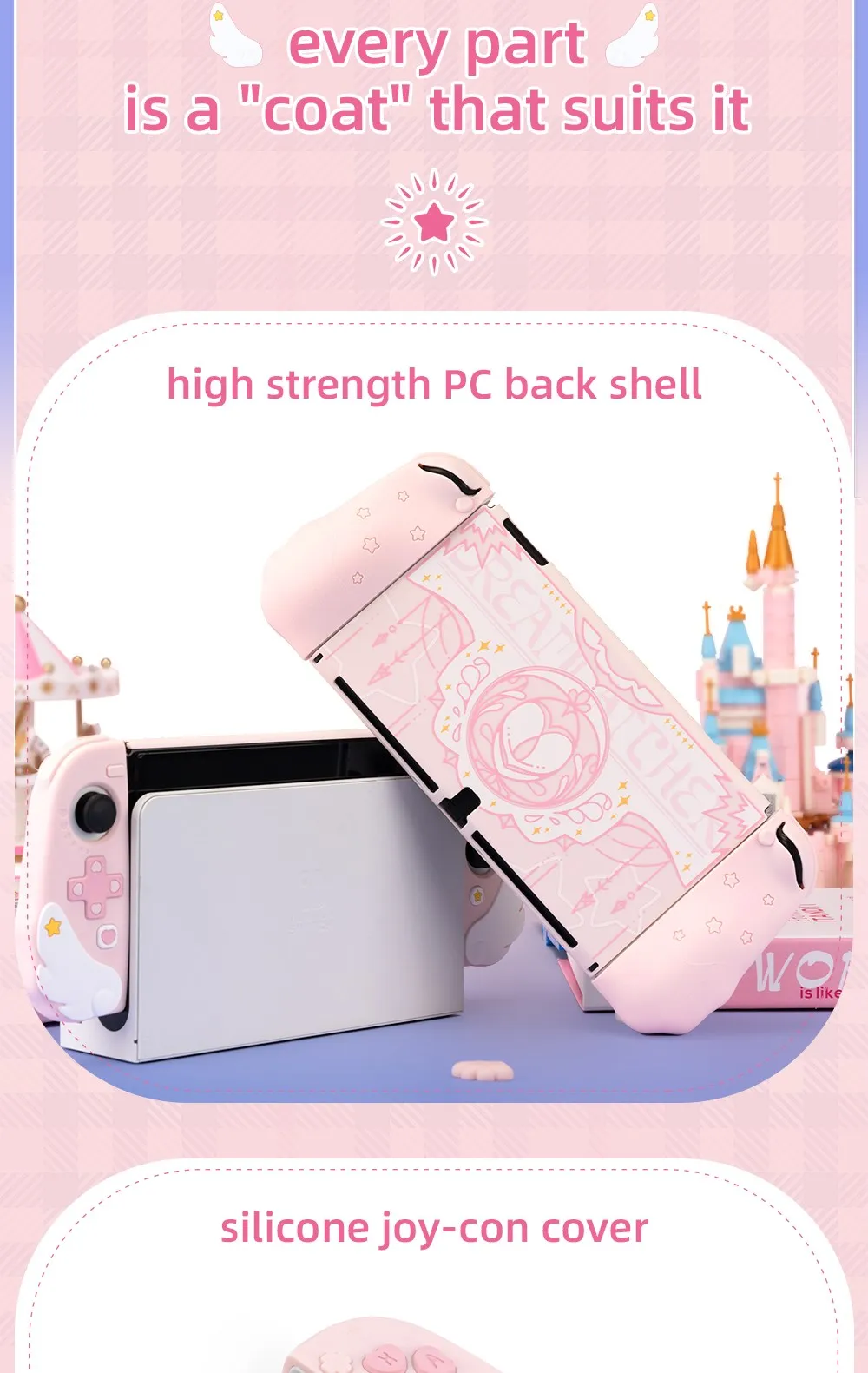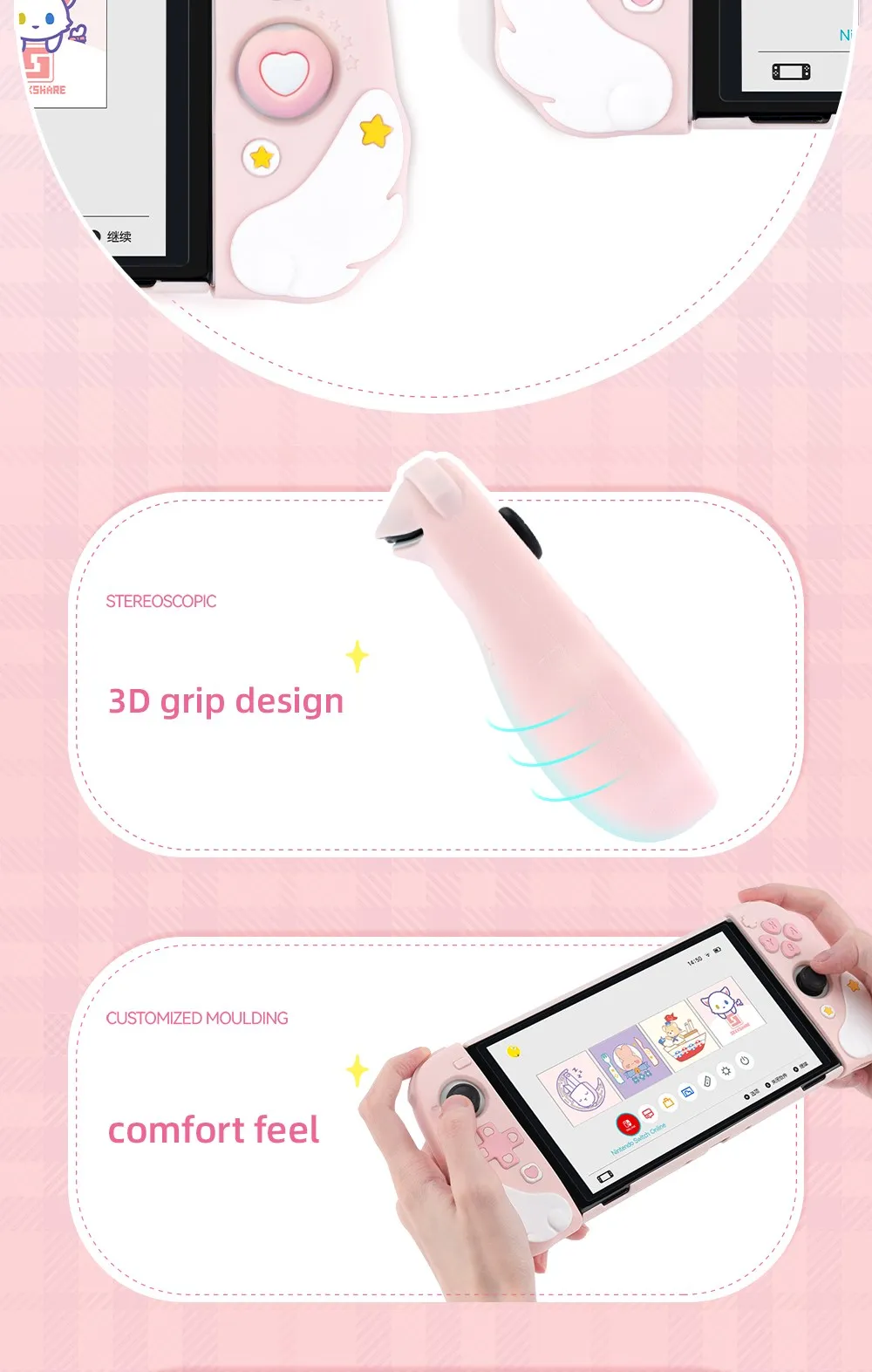 Geekshare Star Wing Series Pink Protective Case Storage Bag Carrying Case Big Mouse Pad for Nintendo Switch OLED Joy Con Gift