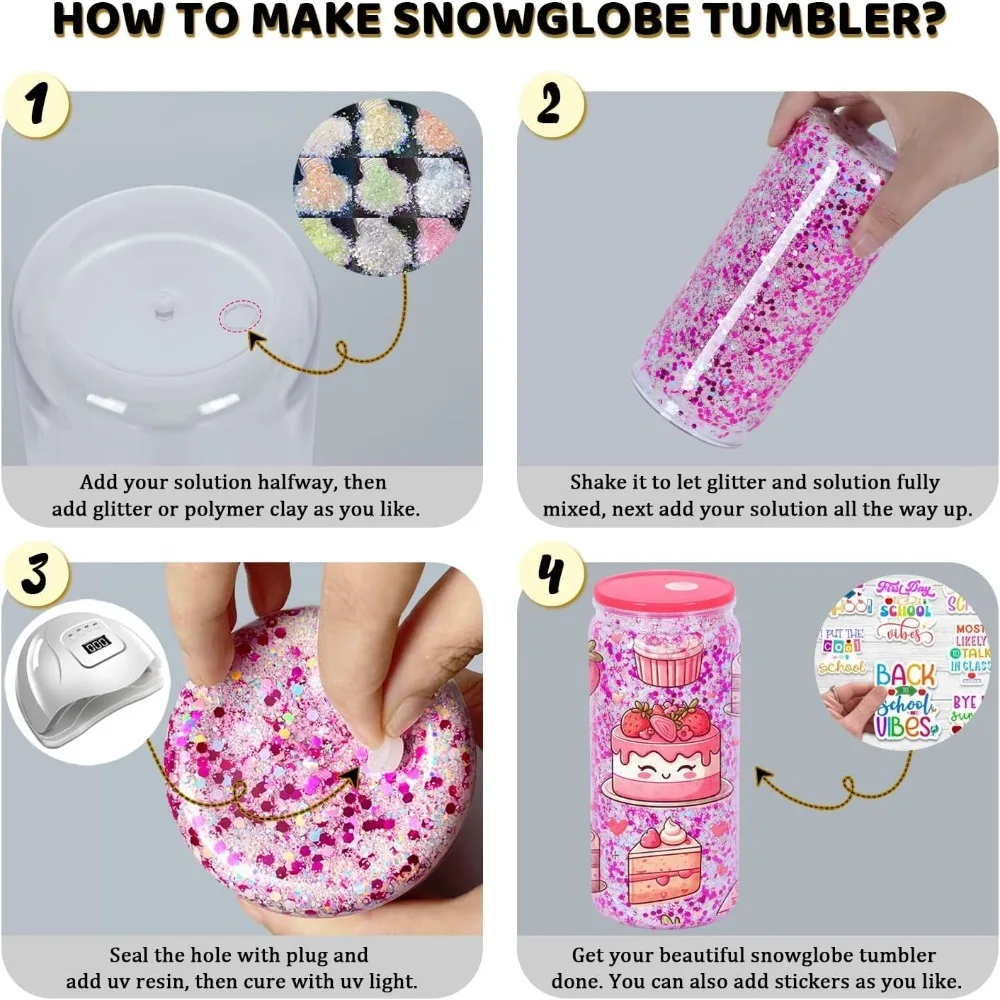 PRE-DRILLED HOLE: The 20 oz plastic snowglobe tumbler has pre-drilled hole and you can choose your favorite glitter and add them into it. It's so fun to make your special cups with a few steps.